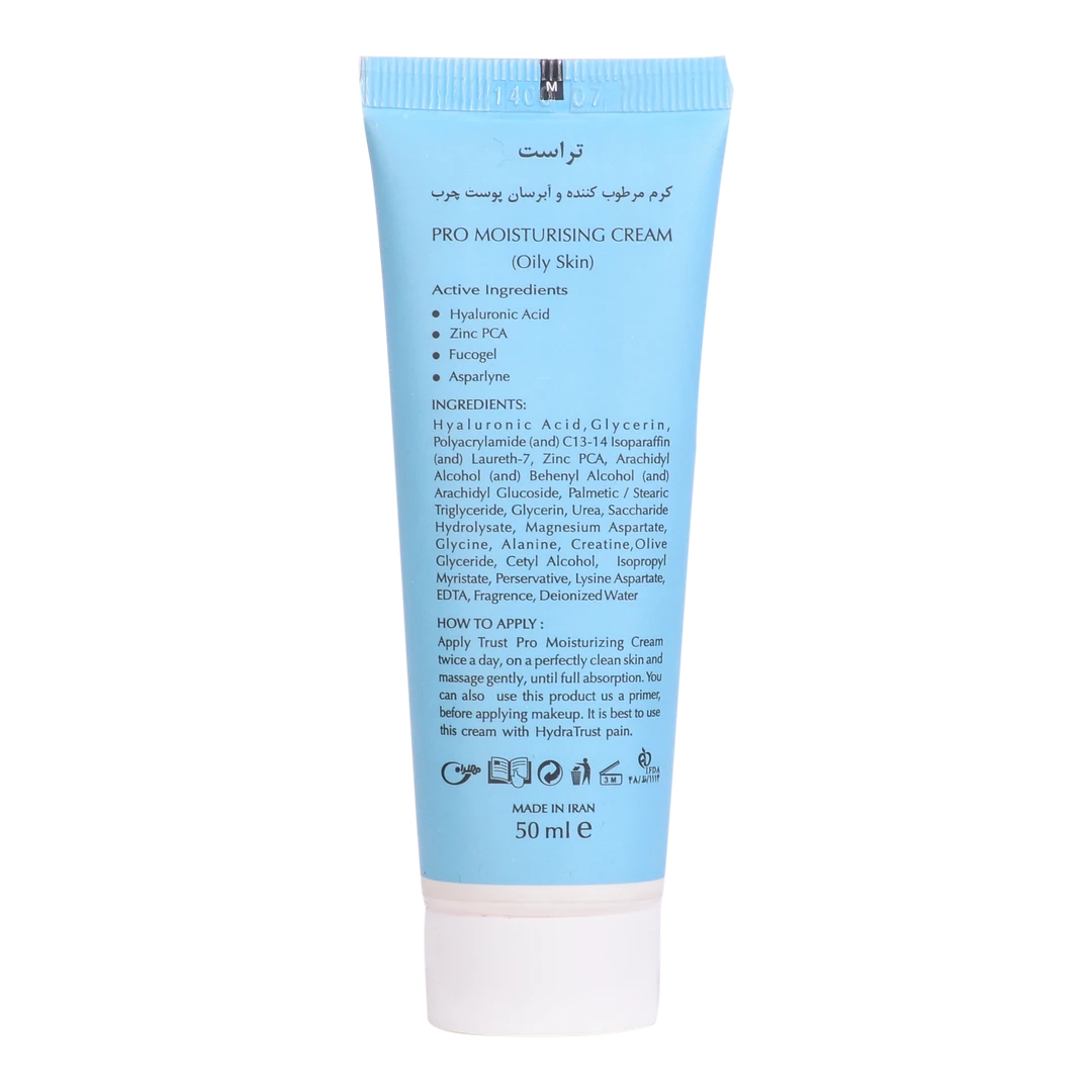 استفاده از کرم آبرسان تراست پوستی سالمتر و جوانتر برای شما به ارمغان میآورد. وجود ترکیبات مغذی مانند فوکوژل و آسپارلین در فرمولاسیون انحصاری این محصول، باعث میشود که علاوه بر آبرسانی به پوست و کمک به بازسازی آن، بتوانید از آن به عنوان پایه آرایش مناسب برای پوست چرب استفاده نمایید.
