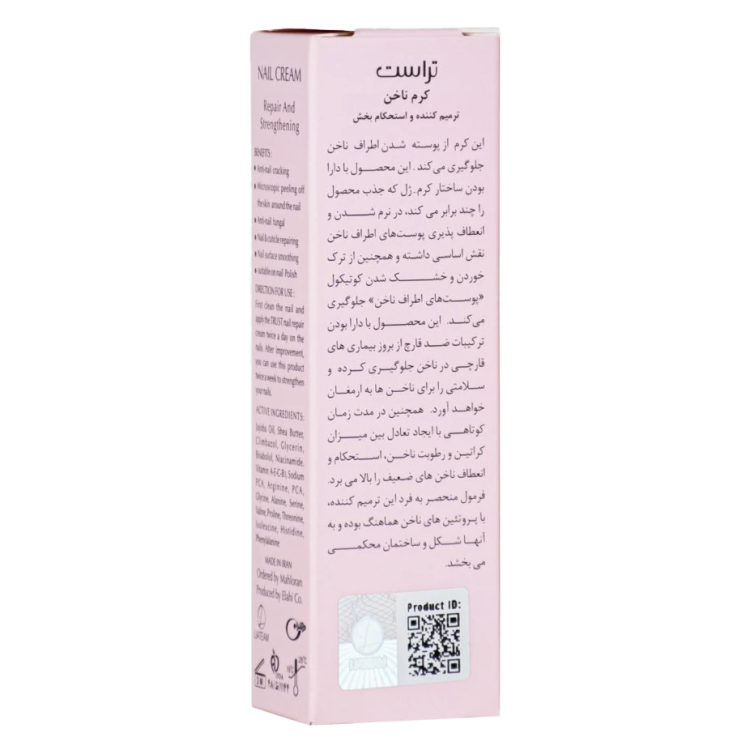 همانطور که پوست و مو به مراقبت احتیاج دارند ناخنهای دست و پا نیز از این قاعده مستثنی نیستند. کرم ترمیم کننده ناخن تراست از ریشه ریشه شدن ناخن جلوگیری میکند. کوتیکول به قسمت سفید رنگ در ابتدای رویش ناخن که تغذیه و رشد ناخن در این قسمت انجام میشود. این محصول بهصورت کرم است که در نرم شدن و انعطاف پذیری پوستهای اطراف ناخن نقش دارد؛ همچنین از ترک خوردن و خشک شدن کوتیکول «پوستهای اطراف ناخن» جلوگیری میکند. این محصول با دارا بودن ترکیبات ضد قارچ از بروز بیماریهای قارچی در ناخن جلوگیری کرده و سلامتی را برای ناخنها به ارمغان خواهد آورد. همچنین در مدت زمان کوتاهی با ایجاد تعادل بین میزان کراتین و رطوبت ناخن، استحکام و انعطاف ناخن های ضعیف را بالا میبرد. فرمول منحصر به فرد این کرم ترمیم کننده، با پروتئینهای ناخن هماهنگ بوده و به آنها شکل و ساختمان محکمی میبخشد.