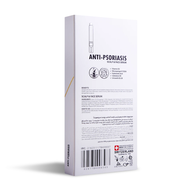 ویتامین D3 یکی از ترکیبات موثر در بهبود علایم و کاهش دفعات بروز اختلالات پوستی پسوریازیس به ویژه در پوست سر و صورت است. این ویتامین تکثیر و رشد سلولها در پوست سر را افزایش داده و بنابراین به جایگزینی پوست آسیب دیده در ناحیه پلاکهای پسوریازیس با سلولهای جدید کمک میکند. این ترکیب از پوست سر در برابر رادیکالهای آزاد و پرتوهای UV مراقبت کرده و بنابراین از خشکی و آسیب پوست و فولیکولهای مو و تشدید علایم پسوریازیس جلوگیری میکند.