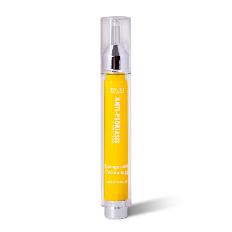 پسوریازیس نوعی بیماری خودایمنی پوستی است که راشها یا پلاکهای پوستی و ضایعاتی را در پوست سر، صورت، زانوها، بازوها و قسمت بالا تنه ایجاد کرده و به عنوان یک بیماری مزمن و بلند مدت شناخته میشود. این پلاکها دردناک هستند و با داشتن یک سیکل مشخص به مدت چند هفته تا چند ماه بروز پیدا کرده و پلاکهایی که رنگ متغیری دارند معمولا به صورت پوستههای صورتی تا قرمز بروز پیدا میکنند. این بیماری با علایم مختلفی مثل خشکی پوست با خونریزی، خارش و سوزش همراه است. پسوریازیس نواحی مختلفی از بدن را درگیر میکند که یکی از مهمترین قسمتها پوست سر و صورت است. شیوع پسوریازیس در پوست سر و صورت منجر به خشکی پوست شده و در نهایت باعث آسیب پوست و شکنندگی و ریزش موها میشود. بنابراین برای کنترل علایم پسوریازیس میبایست از محصولات مراقبتی مناسب استفاده کرد. سرم بهبود دهنده پسوریازیس تراست با بهرهگیری از تکنولوژی اسپانجوزوم به طور موثری به نفوذ و رهاسازی پیوسته ترکیبات لایهبردار و بهبود دهنده ساخت سلولهای جدید در پوست سر و صورت کمک کرده و با بهبود پلاکهای پسوریازیس و کاهش علایم بیماری، سلامت پوست را حفظ میکند. این محصول با دارا بودن ترکیبات موثره آبرسان و ضد التهاب، از خشکی پوست سر و صورت جلوگیری کرده و با مهار واسطههای التهابی، از پیشرفت عارضه جلوگیری کرده و کمک شایانی به بهبود ضایعات پسوریازیس میکند.