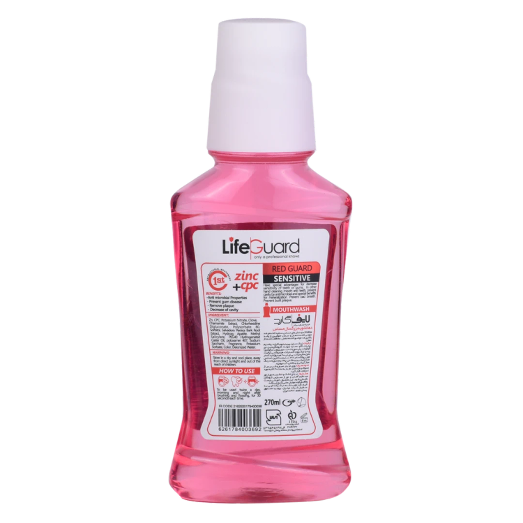 دهانشویه بزرگسال حساس (Red Guard) برند لایف گارد با حجم 270 میلی لیتر