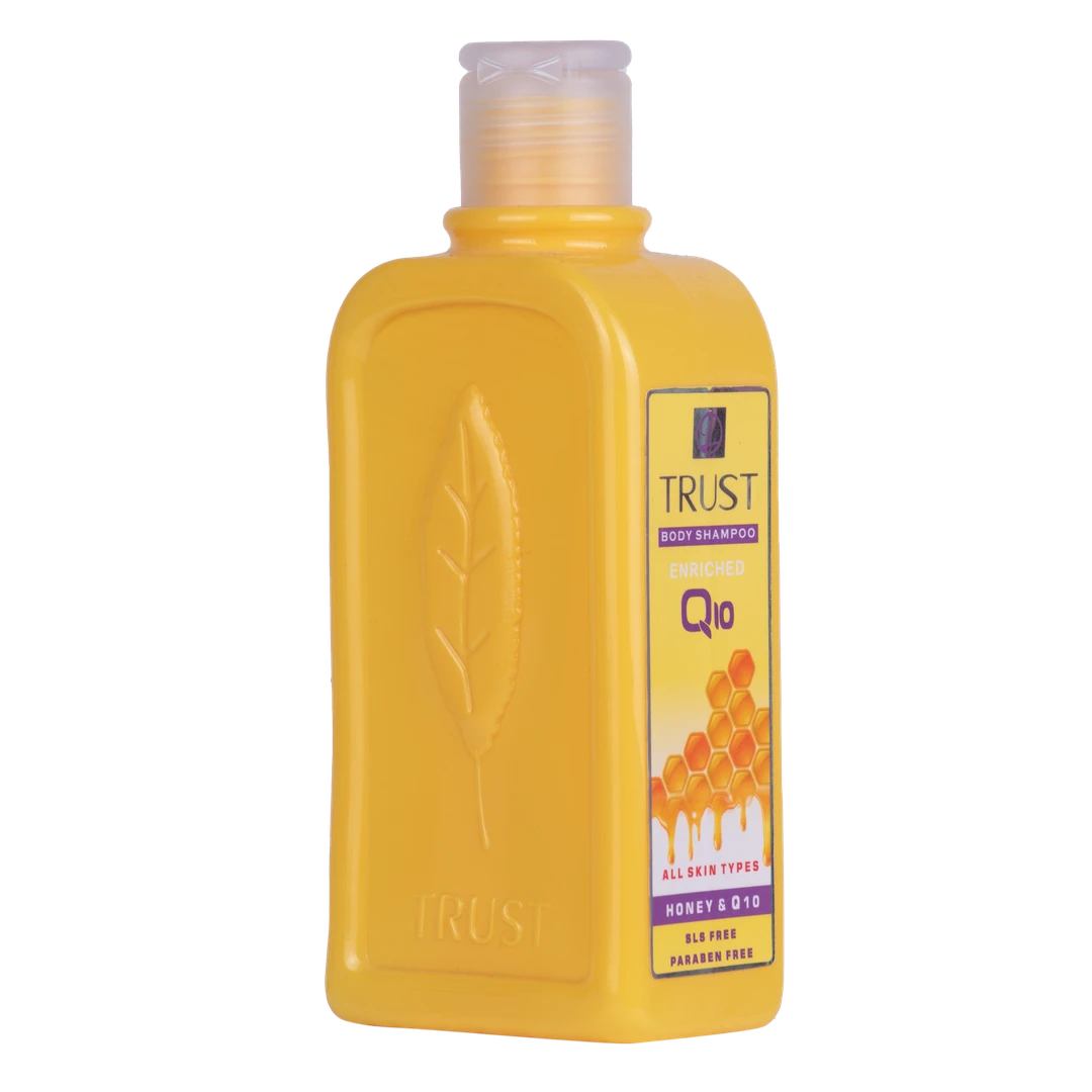 شامپو بدن عسل و Q10 تراست، حاوی عسل است که لایه رویی پوست را آبرسانی میکند و چین و چروکهای پوست را کاهش میدهد. همچنین این شامپو بدن با داشتن کوآنزیم کیوتن به تقویت سد دفاعی پوست کمک میکند و جلوی آسیب پرتوهای UV خورشید را میگیرد. عصاره بابونه موجود در این محصول ضدالتهاب و روشنکننده پوست است.