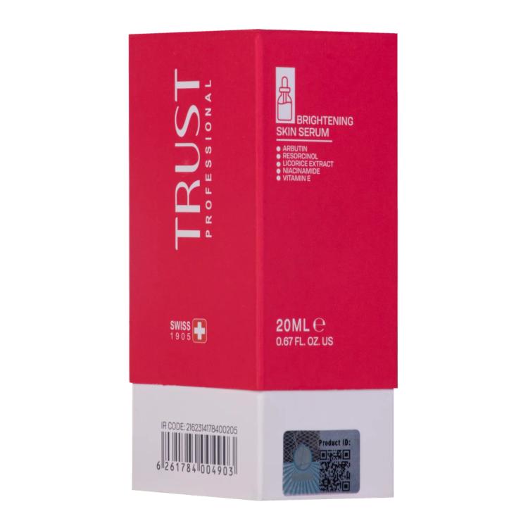 سرم روشن کننده تراست، ضمن آبرسانی پوست، با داشتن مواد مؤثره مناسب و کاربردی پوست را روشن کرده و لک و تیرگیهای آن را برطرف میکند. این محصول با وجود آربوتین در ساختار خود، آنزیم تیروزیناز (که نقش اساسی در تولید ملانین دارد) را مهار کرده و از ایجاد لک روی پوست جلوگیری میکند. رزورسینول موجود در این سرم، از بروز لک جلوگیری کرده و لکهای پوستی را کوچک و کمرنگ میکند. نیاسینامید در این محصول علاوه بر وظیفه روشنکنندگی پوست، با داشتن خواص آنتیاکسیدانی از پوست دربرابر رادیکالهای آزاد محافظت میکند و عصاره شیرینبیان هم از لک، قرمزی و التهاب در پوست جلوگیری میکند. سرم روشنکننده تراست، یک محصول فوقالعاده برای داشتن پوستی روشن، یکدست و زیباست.