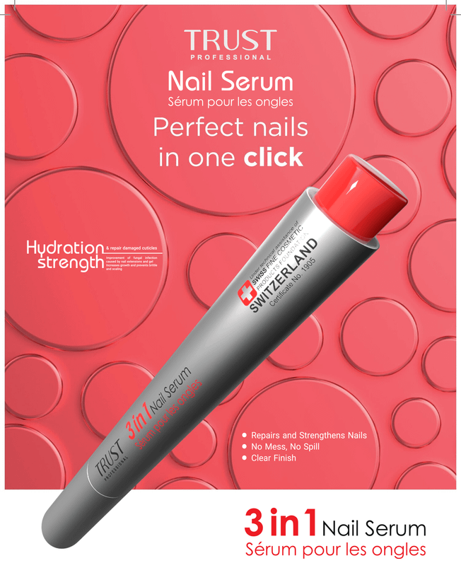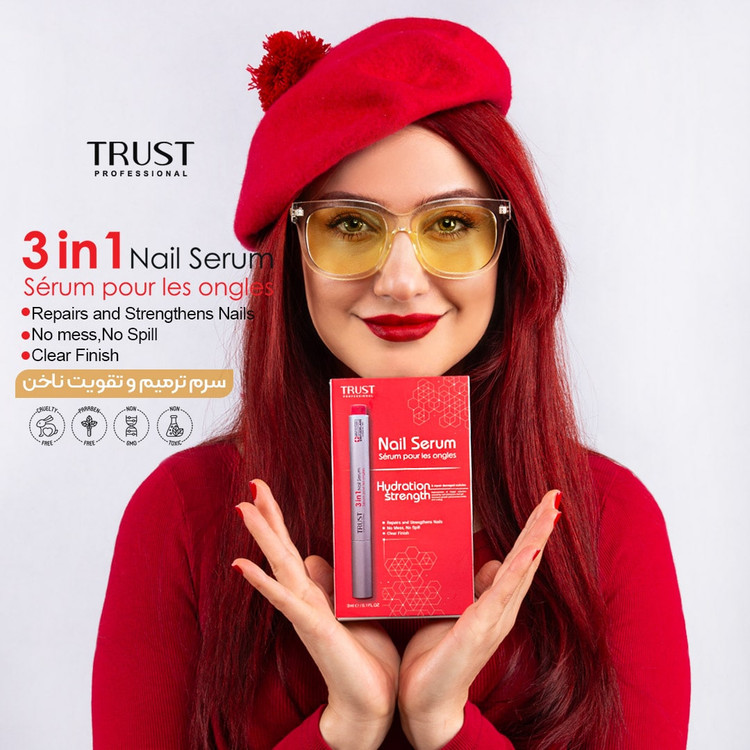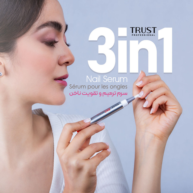 امروزه اکثر مشکلات مربوط به ناخن که شامل شکنندگی، پوسته پوسته شدن ناخن و کوتیکول، بلند شدن صفحهی ناخن، ایجاد برجستگی و یا فرورفتگی در سطح ناخن، رشد نامناسب، عفونت، التهاب و قرمزی بافت اطراف ناخن در اثر آسیب به ماتریکس ناخن و یا کاشت و زیباسازی غیراصولی ناخن ایجاد می شود. بنابراین برای درمان یا رفع مشکلات ناخن میبایست از محصولات مراقبتی استفاده کرد که بتواند ناخنها را ترمیم و مستحکم کرده و یا در صورت وجود عفونت قارچی، به درمان آنها کمک کند. برای درمان شکنندگی ناخنها که با کمبود رطوبت در ناخن ایجاد میشود، میبایست از محصولاتی استفاده کرد که به میزان کافی سطح ناخن را آبرسانی میکنند. کراتین، پروتئین اصلی تشکیل دهندهی صفحه ناخن است. زمانی که به دلایل مختلف میزان کراتین در بستر ناخن کم شود و یا اتصالات بین رشته ها از بین برود، استحکام و یکپارچگی ناخن کم شده و ناخن شکننده یا پوسته پوسته (به اصطلاح پلیسه) میشود. بنابراین استفاده از محصولاتی که ساخت کراتین در ناخن را افزایش دهد، استحکام و سفتی ناخنها را بهبود میبخشد. سرم تقویت کننده ناخن سه در یک تراست با داشتن ترکیبات آبرسان و ویتامینهای موثر، استحکام و رشد ناخن را افزایش داده و به ترمیم آسیبهای کوتیکول کمک میکند. ترکیبات ضد قارچی موجود در این محصول، ضمن بهبود عفونتهای قارچی ایجاد شده در ناخن، التهاب بافت اطراف ناخن را بهبود بخشیده و با حفظ سلامت ناخنها، زیبایی ناخنهای را دو چندان میکند.