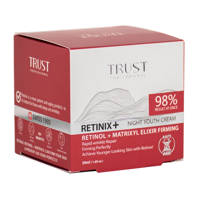 از آنجاییکه با افزایش سن و گذشت زمان، به صورت طبیعی، میزان تولید پروتئینهای استحکامبخش پوست کاهش یافته و پوست دچار چینوچروک میگردد، پوست به مراقبت و آبرسانی بیشتری نیاز دارد؛ بنابراین استفاده از محصولات تخصصی ضدچروک برای همه افراد ضرورت دارد. کرم جوانساز رتینول تراست، به واسطه بهرهمندی از ماده مؤثره رتینول و با افزایش تکثیر سلولهای پوستی و افزایش تولید کلاژن در آنها، به بازسازی سلولهای مرده پوستی و افزایش استحکام پوست کمک میکند و با داشتن خواص آنتیاکسیدانی و مهار رادیکالهای آزاد، جلوی ایجاد چینوچروک در پوست را میگیرد. همچنین با داشتن ترکیب فعال ماتریکسیل مورفومیکس، به طرز مؤثری چینوچروکهای صورت، به ویژه خطوط عمودی آن و چروکهای پنجه کلاغی را از بین برده و به تقویت ساختار پوست صورت کمک میکند.